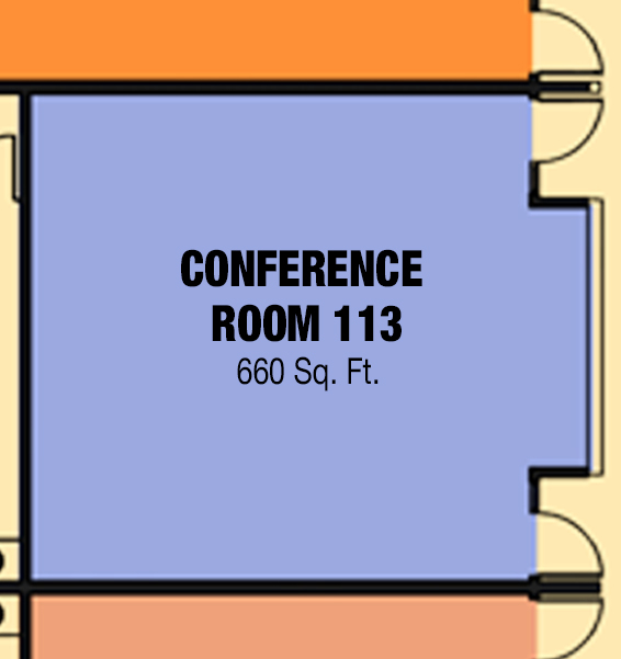 Thank you for your interest in Conference Room 113. We have designed and equipped this room to be the perfect venue for medium size meetings or gatherings up to 50 people.