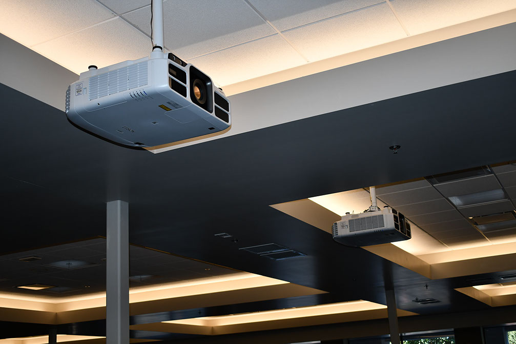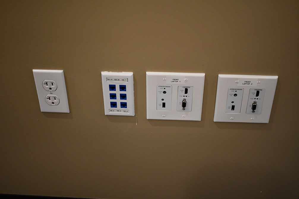 All Conference and Meeting Rooms throughout the Veterans Hall are equipped WiFi access and data port hookups for the latest laptop computers, tablets or other mobile devices. A large hidden audio/visual screen is permanently installed at the front of each room and can be easily lowered to enable you to make smooth effortless presentations.