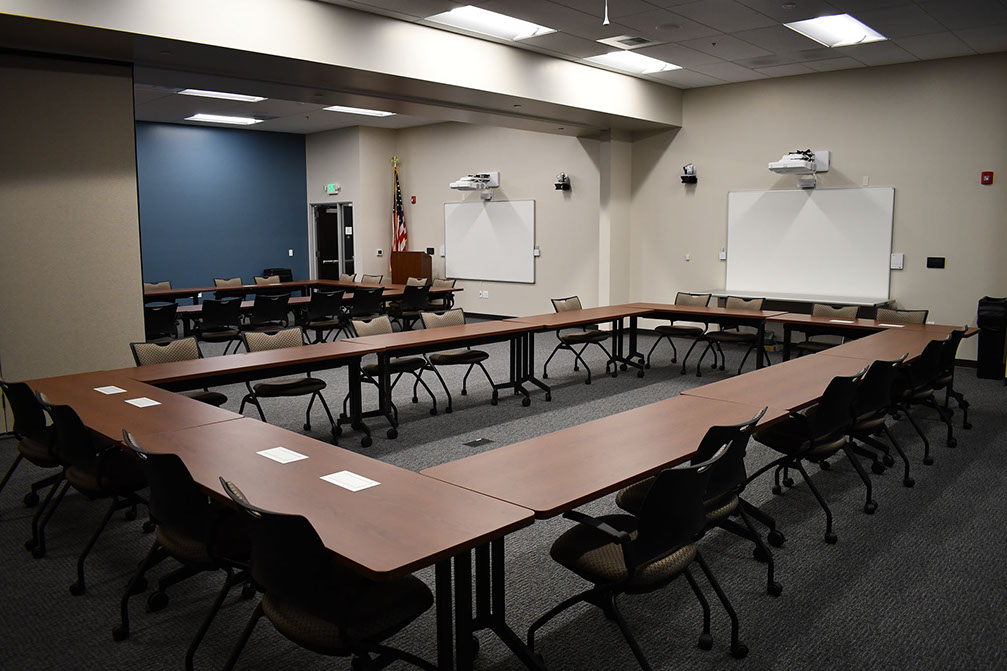 Thank you for your interest in Conference Room 115. We have designed and equipped this room to be the perfect venue for medium size meetings or gatherings up to 50 people.